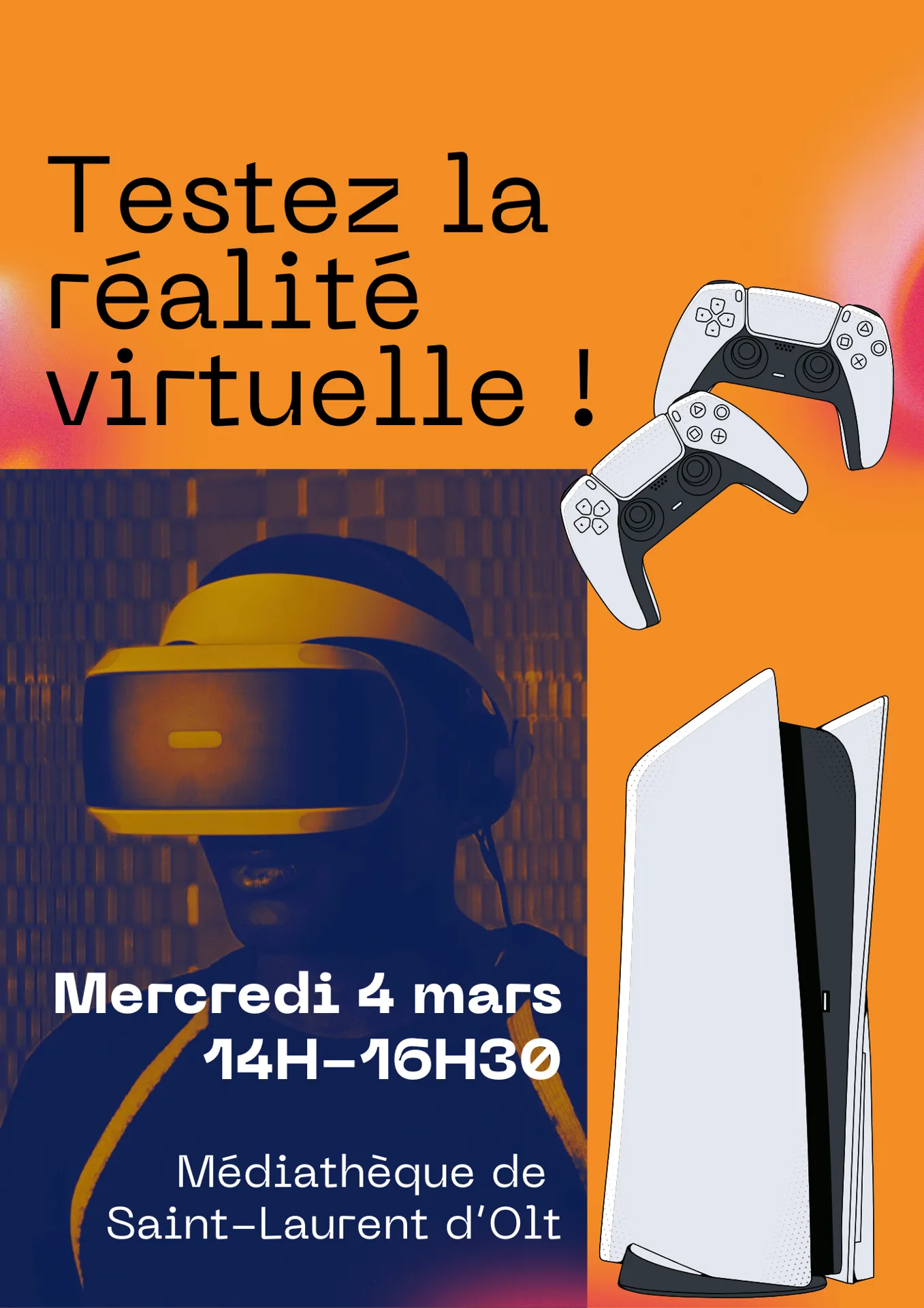 Playstation 5 avec casque de réalité virtuelle à la médiathèque de Saint Laurent d’Olt